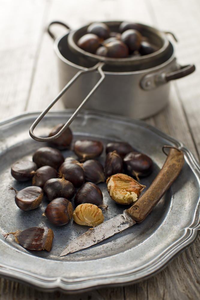 Si ammorbidiscono 12 0 15 castagne, si sbucciano e poi si bollono nel latte. Quando sono bene cotte si passano per setaccio. Quindi si fa una crema di ova (uova) e latte, 12 ova, per 4 bicchieri di latte, con zucchero di vaniglia, ci si aggiunge la purea di castagne. Quando è fredda si mette nella sorbettiera e a mezza gelatina vi si unisce un poco di panna montata e del rum a volontà secondo il gusto; poi si finisce di farla gelare e quando è gelata di mette nello stampo con ghiaccio secondo il solito.