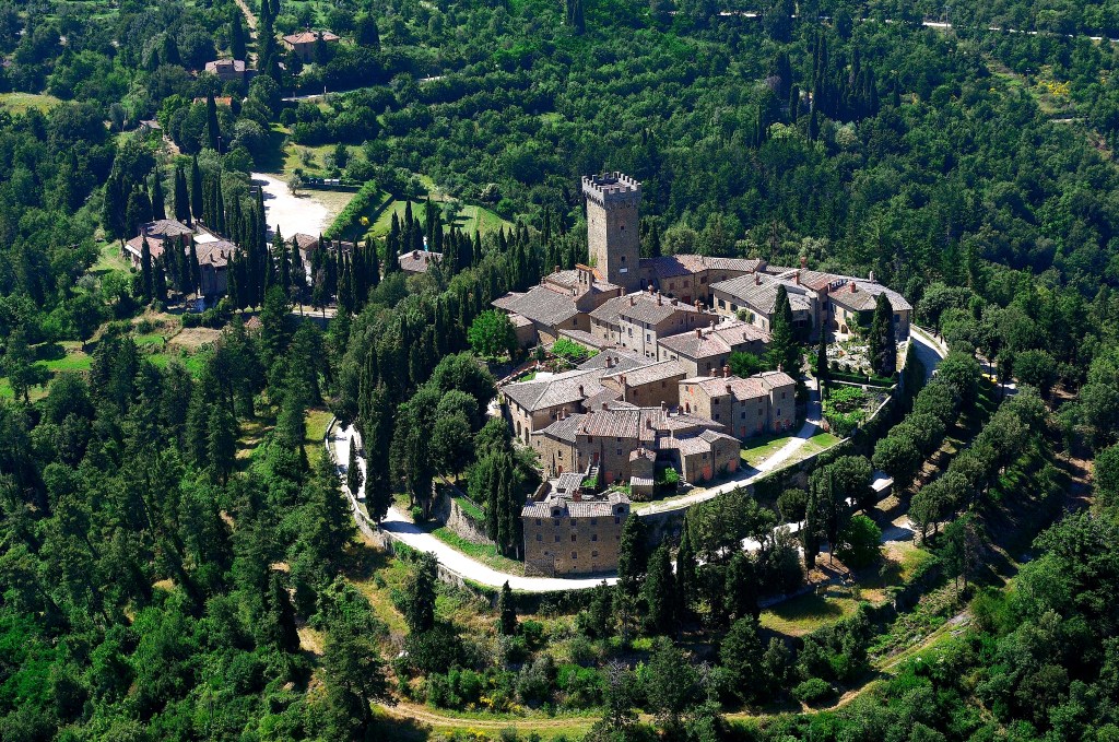 Il castello, sito in una zona collinare e boschiva, a una manciata di chilometri da Monte San Savino, in una terra antichissima di memorie etrusche, qualche anno più tardi, precisamente nel 1304, darà asilo al Divin Poeta e ad altri fuoriusciti ghibellini, fuggiti dall’ormai Guelfa Firenze.