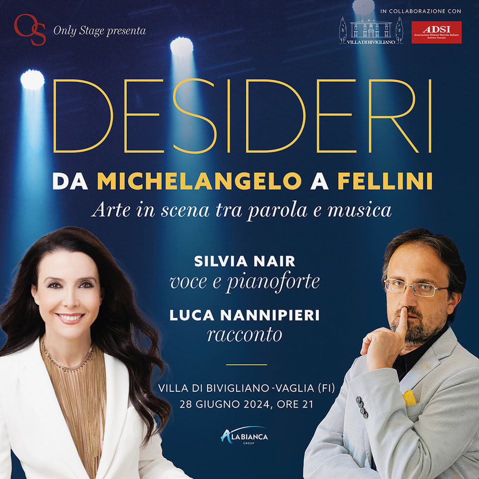 Lo spettacolo “Desideri. Da Michelangelo a Fellini” è un viaggio incredibile dentro le pulsioni più profonde dell’anima umana: i desideri (Ardor, Cupiditas, Curiositas, Fames…). L’arte si fa musica e scena con Silvia Nair, cantautrice e compositrice e Luca Nannipieri, scrittore e storico dell’arte. Attraverso immagini, canto e parole, gli spettatori sono condotti nelle sfumature più impensabili delle nostre fantasie, illuminate nel viaggio dai capolavori di artisti e registi.