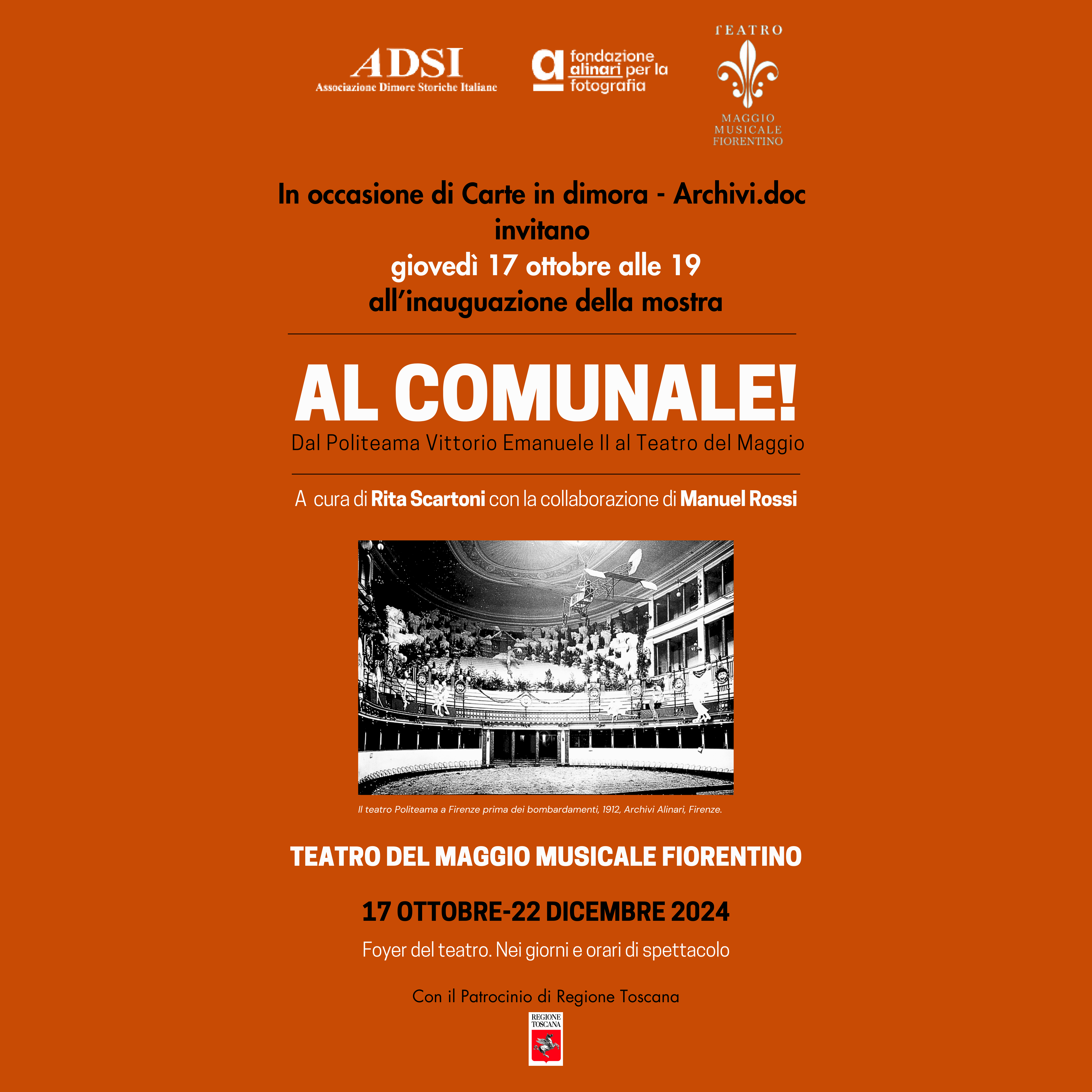 La mostra nasce dalla collaborazione tra ADSI Toscana, Fondazione Alinari per la Fotografia e Fondazione Teatro del Maggio Musicale Fiorentino e si inserisce all’interno delle attività legate a Carte in dimora – Archivi.doc con il patrocinio della Regione Toscana.