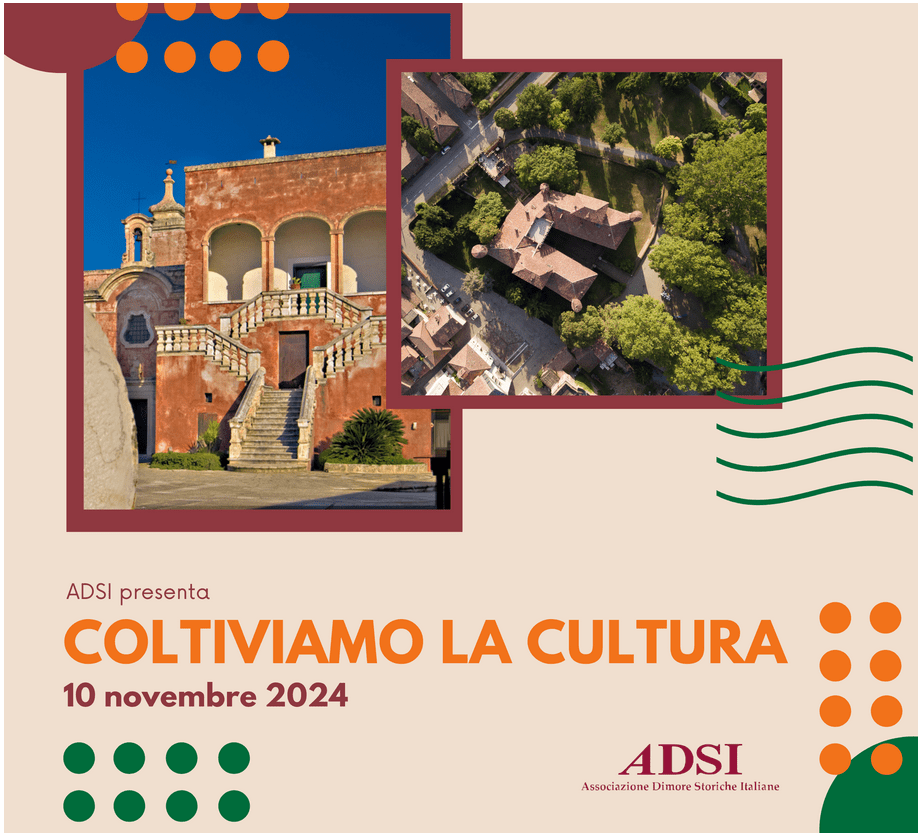 Domenica 10 novembre si svolge la terza edizione di “Coltiviamo la Cultura: Festa dell’Agricoltura nelle Dimore Storiche”, un evento promosso dall’Associazione Dimore Storiche Italiane per portare l’attenzione su due delle principali risorse del nostro territorio nazionale: la cultura e l’agricoltura, beni non delocalizzabili il cui sostegno è strategico per lo sviluppo del Paese e, in particolare, delle aree interne.