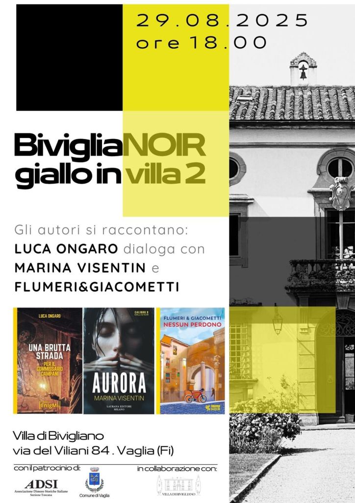 Villa di Bivigliano, dopo il successo dello scorso anno, ospita venerdì 29 agosto alle 18 la seconda edizione di BivigliaNoir – giallo in villa. Con il patrocinio di ADSI Toscana e del Comune di Vaglia.