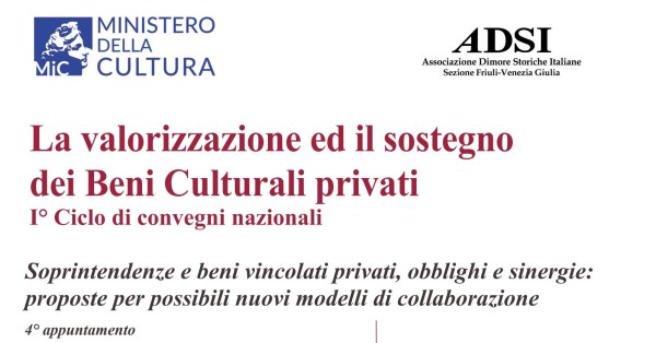 Venerdรฌ 25 ottobre si รจ svolto a Palazzo Orgnani a Udine il convegno dal titolo "Soprintendenze e beni vincolati privati, obblighi e sinergie: proposte per possibili nuovi modelli di collaborazione" che si inserisce nel 1ยฐ ciclo di convegni nazionali "La valorizzazione ed il sostegno dei Beni Culturali privati". Guarda la registrazione del convegno.
